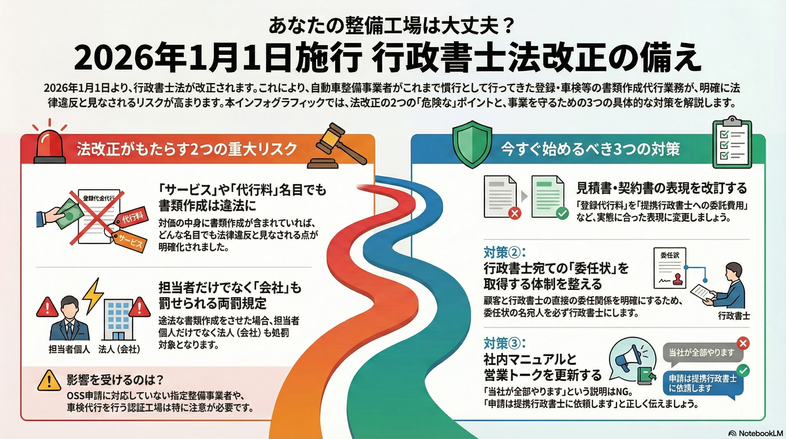 はじめに 令和8年1月1日(2026年1月1日)から施行される行政書士法の一部改正について、対策はお済みでしょうか? 今回の改正は、今まで当たり前のようにやってきた仕事のやり方を根本から見直す必要が生じる可能性が大きいも […]